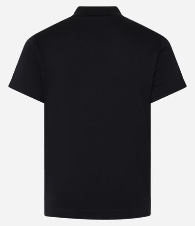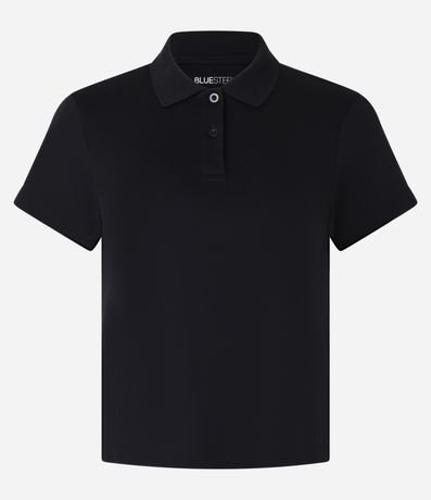 Blusa feminina confeccionada em algodão Peruano mais sustentável, peça com o modelo e a gola polo com abotoamento duplo, manga curta e sem estampa.