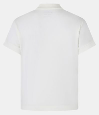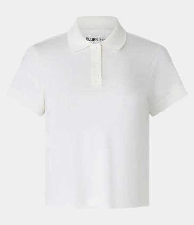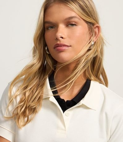 Ref: Blusa feminina confeccionada em algodão Peruano mais sustentável, peça com o modelo e a gola polo com abotoamento duplo, manga curta e sem estampa.