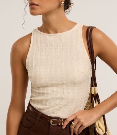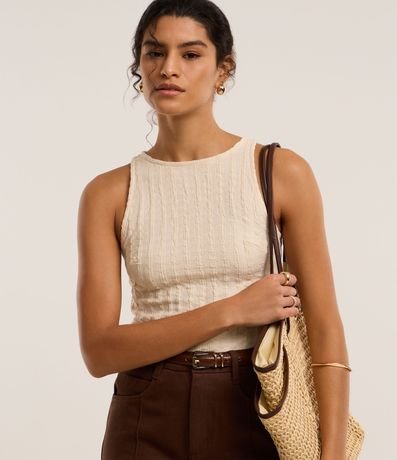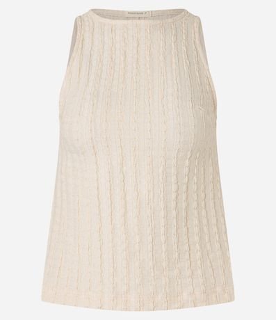 Ref: Blusa sem mangas, confeccionada através de boas práticas ambientais, com gola redonda. Peça tem malha com texturas estilizadas.