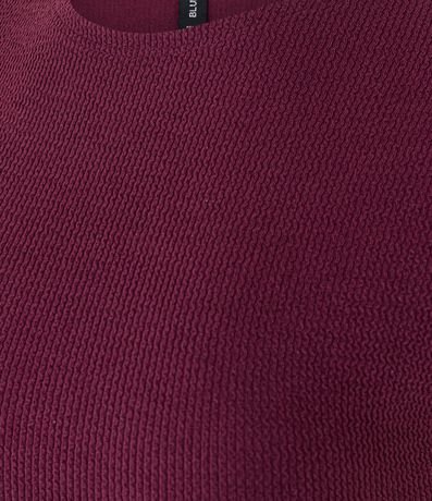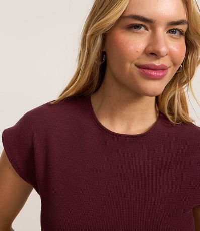 Blusa feminina com gola redonda, manga curta, peça sem cava e textura.