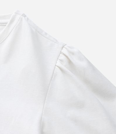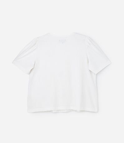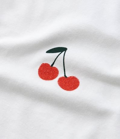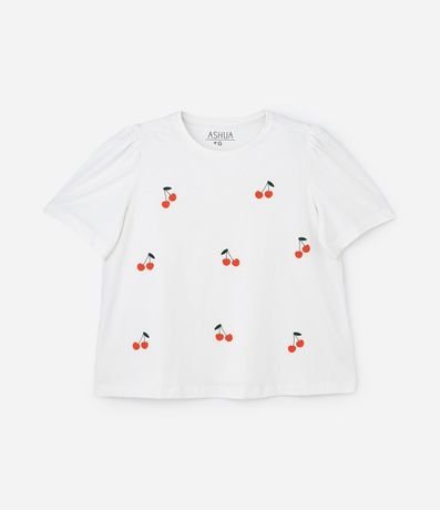 Ref: Blusa feminina Curve & Plus Size com gola redonda, confeccionada em algodão certificado bci, peça com manga curta bufante e estampa de cerejinhas.