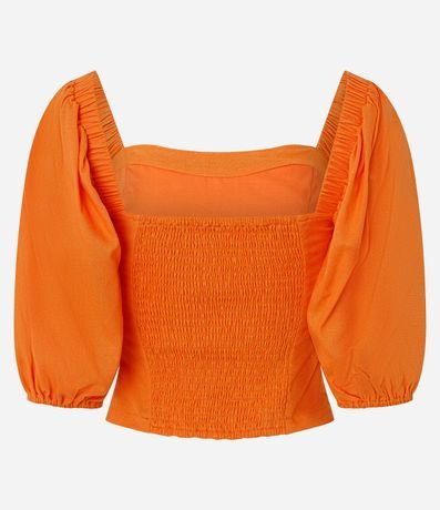 Ref: Blusa em crepe com decote reto, mangas curtas bufantes e corpo com efeito franzido nas costas para melhor ajuste. Modelo versátil com visual elegante e toque estruturado, ideal para compor produções casuais ou arrumadas com leveza e conforto.