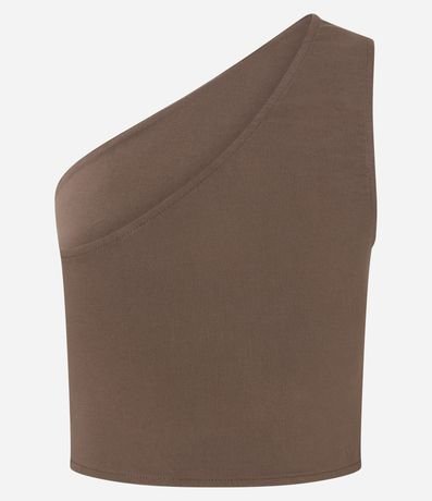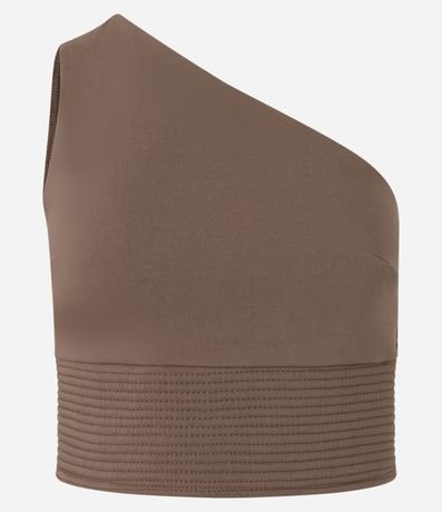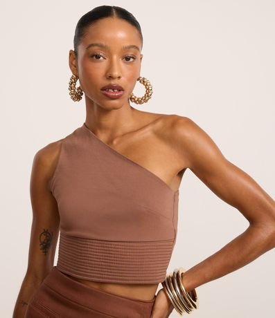 Blusa feminina em bengaline com ombro único e faixa na cintura pespontada.