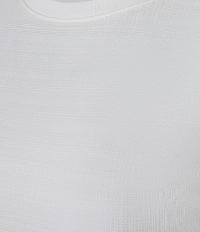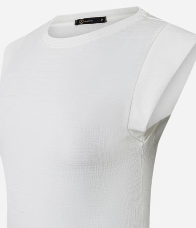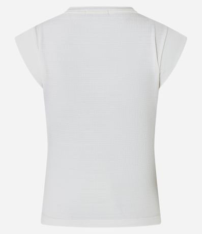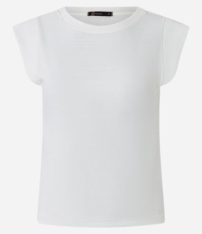 Blusa feminina com gola redonda, manga curta, ombro estruturado e textura.