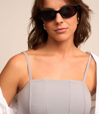 Ref: Corset em alfaiataria, alcinhas finas, recortes frontais e barra arredondada.