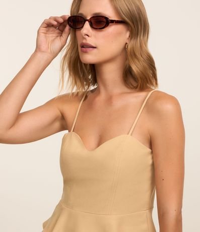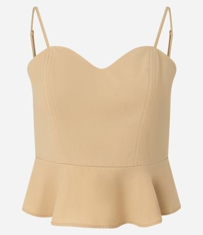 Ref: Blusa corsetada feminina, confeccionada em crepe, com alcinha fina, zíper nas costas e babado peplum na barra.
