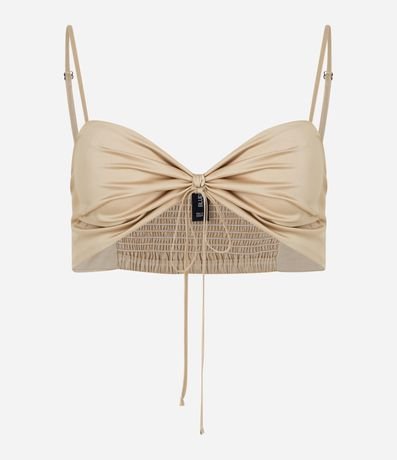 Ref: Blusa cropped feminino acetinada com alça fina e amarração no decote.