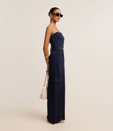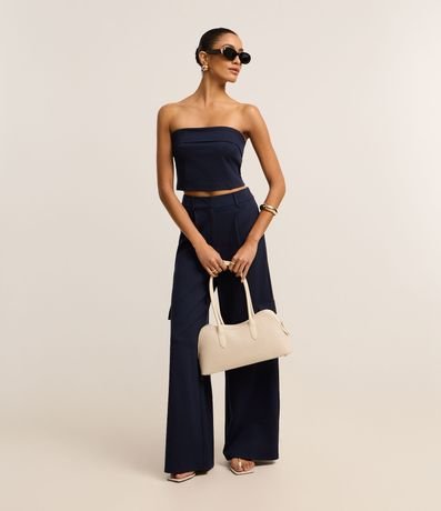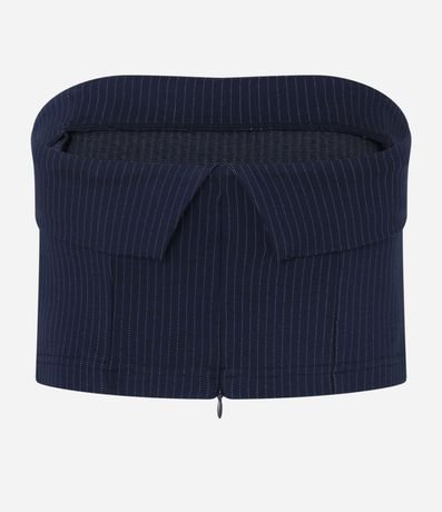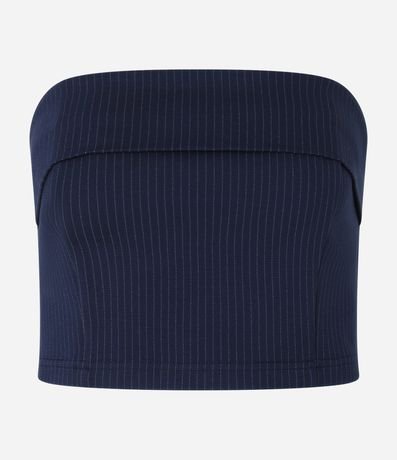 Ref: Blusa cropped sem alças, confeccionada em ponto roma, com decote reto virado e listras verticais de fios tintos. O top tem modelagem bem ajustada ao corpo.