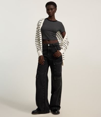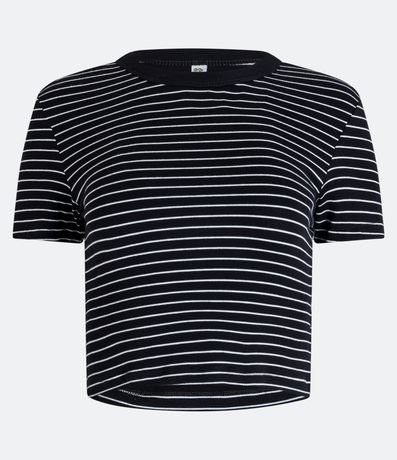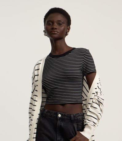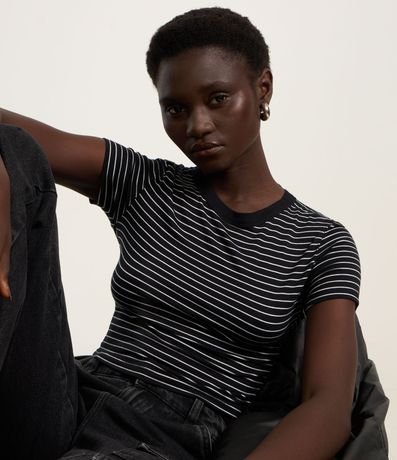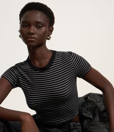 Ref: Blusa curta em viscolycra, com mangas curtas e estampa de listras.