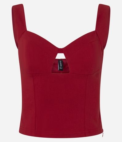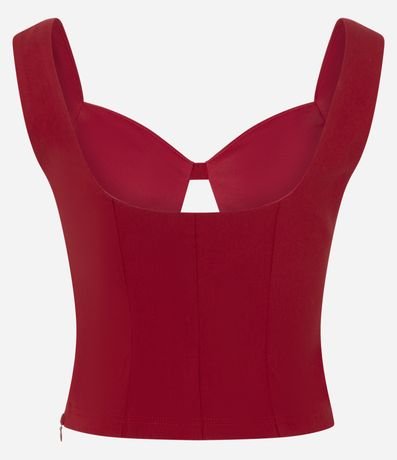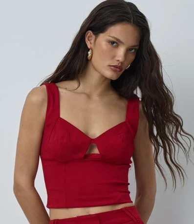 Blusa sem manga com modelagem cropped, confeccionada em viscose certificada e boas práticas ambientais. Possui decote coração com recorte central, alças largas estruturadas e superfície lisa, oferecendo ajuste elegante ao corpo e versatilidade para compor looks modernos e noturnos.