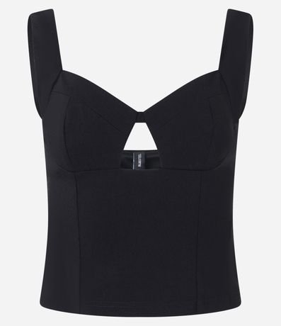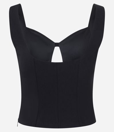 Blusa sem manga com modelagem cropped, confeccionada em viscose certificada e boas práticas ambientais. Possui decote coração com recorte central, alças largas estruturadas e superfície lisa, oferecendo ajuste elegante ao corpo e versatilidade para compor looks modernos e noturnos.
