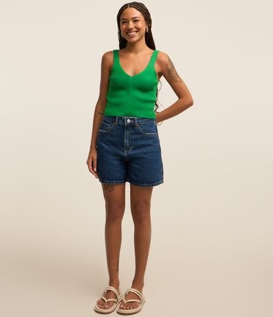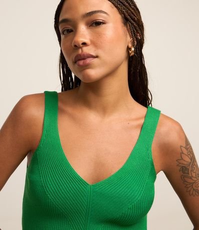Ref: Blusa curtinha em tricô com alças largas além decote V. O fit mais curtinho e a textura listrada são o auge fashion desta blusinha.