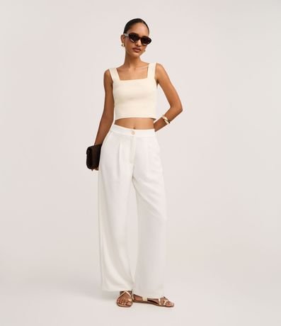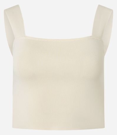 Ref: Blusa cropped, sem mangas, confeccionada em viscose canelada, com decote quadrado e alças largas. Este produto possui viscose certificada em sua composição, sendo ambientalmente mais responsável.
