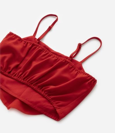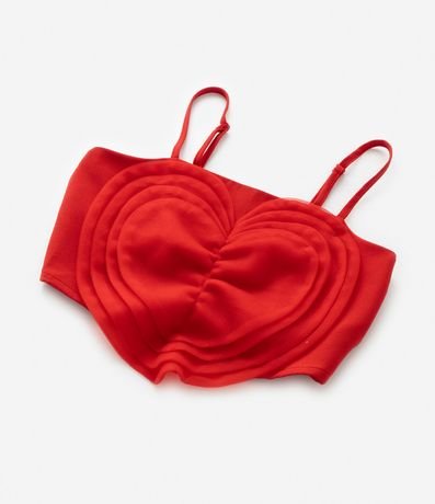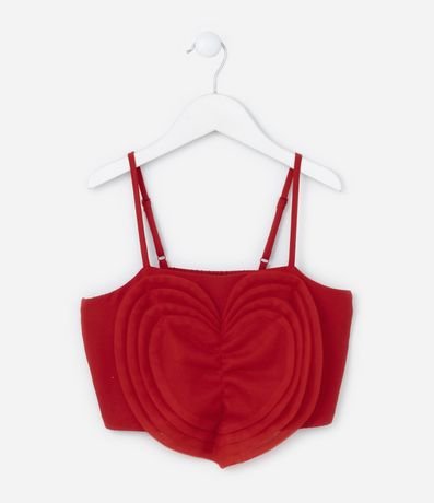 Ref: Blusa cropped infantil com alças finas e aplicação de formato coração.