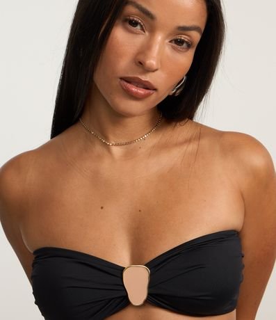 Blusa cropped com decote tomara que caia, aviamento orgânico no busto e confeccionado em poliamida.