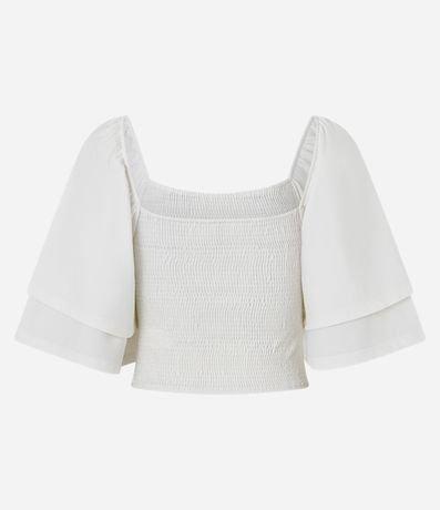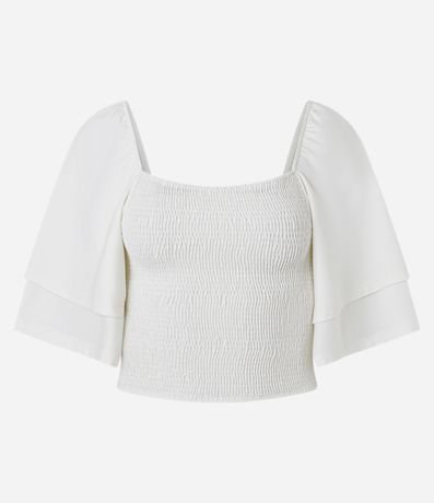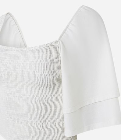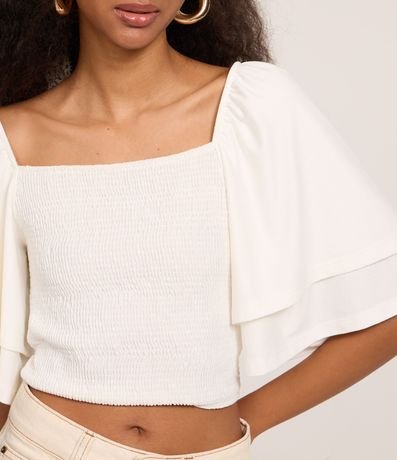 Ref: Blusa cropped feminina confeccionada em poliéster com toque suave e lastex para ajuste perfeito. Modelo com decote reto e mangas curtas duplas, garantindo estilo e conforto. Ideal para compor looks modernos e versáteis, perfeita para ocasiões casuais ou produções fashion.