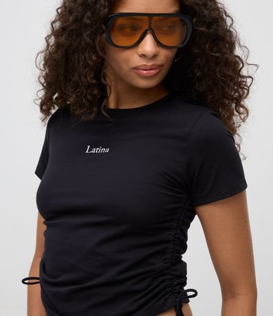Ref: Blusa em algodão com lettering frontal latina e detalhe de colisse lateral que permite ajustar o caimento. Possui gola redonda, mangas curtas e visual moderno para compor looks casuais versáteis. Peça leve, confortável e ideal para o dia a dia.