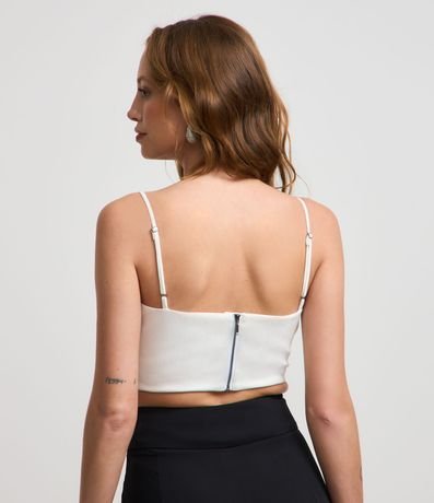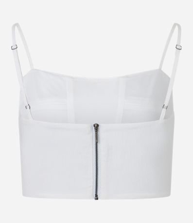 Blusa cropped de alcinhas com ajustadores confeccionada em bengaline com decote reto e fechamento traseiro por zíper.