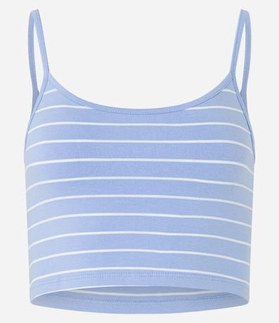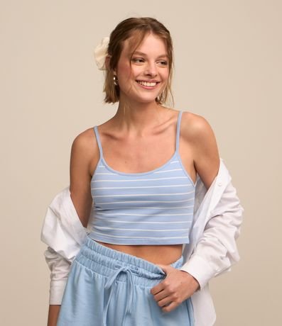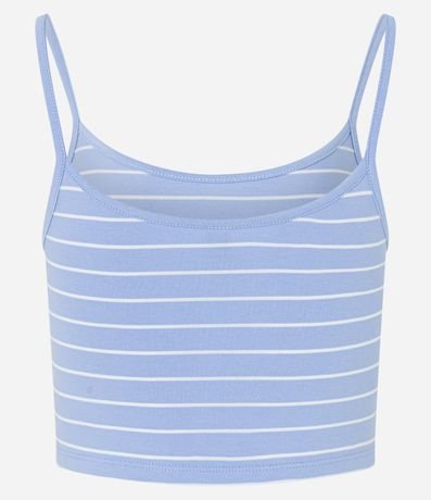 Blusa cropped, alcinha, listrada, com textura e confeccionada em material mais sustentável.