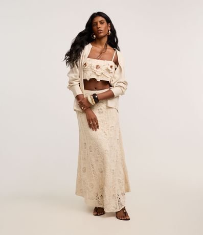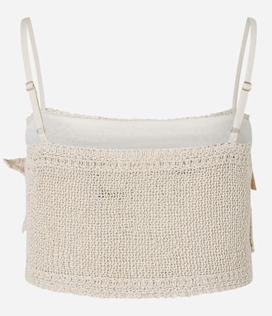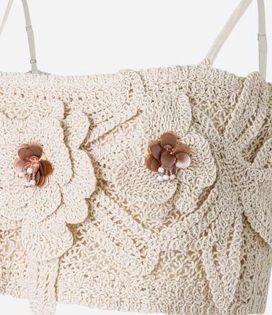 Blusa Cropped de Alça em Tricô com Flores Aplicadas