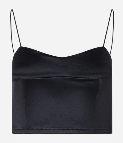 Blusa cropped com alcinhas finas, recortes no busto e decote quadrado.