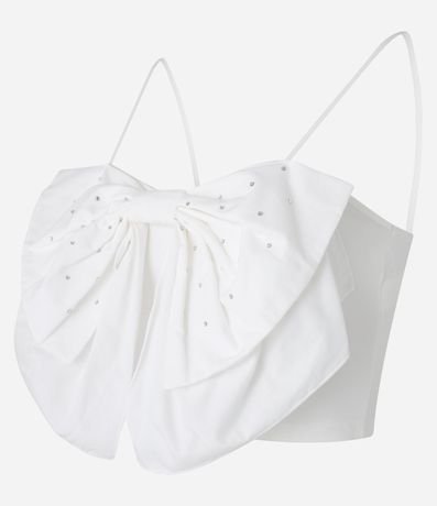 Blusa Cropped em Algodão com Laço e Brilhos Aplicados