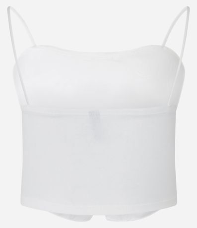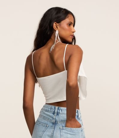 Blusa cropped com alcinha fina, confeccionada em algodão mais sustentável e laço frontal com brilhos aplicados.