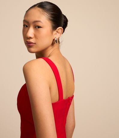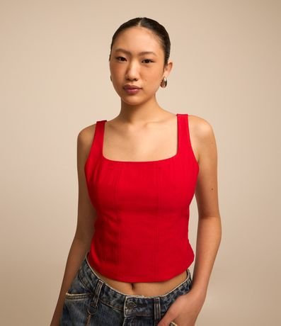 Blusa cropped, decote quadrado, alças largas e fechamento por zíper nas costas,