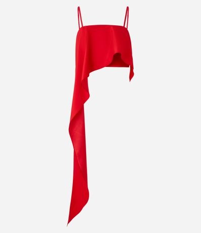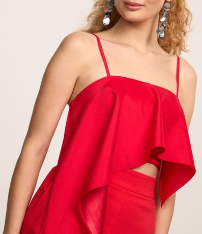 Blusa cropped com alcinhas finas, confeccionado em cetim com lastex nas costas e babado assimétrico.