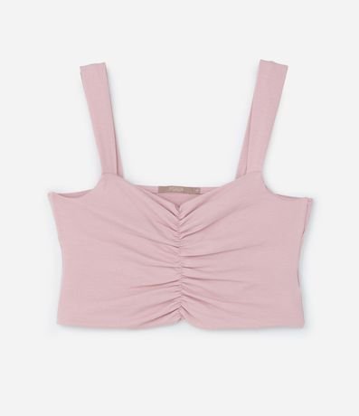 Ref: Blusa de modelo cropped confeccionada em malha cotton, sem estampa e com franzido no busto. Possui alças médias.