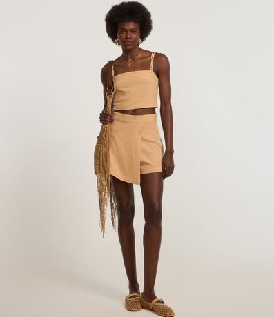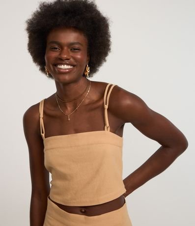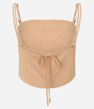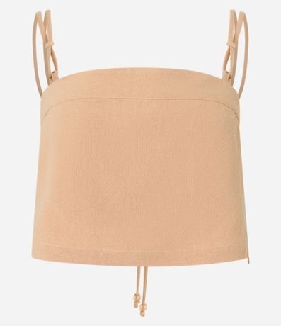 Ref: Blusa feminina sem manga em crepe, modelo cropped com decote quadrado, alças duplas e amarração nas costas.