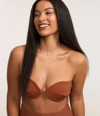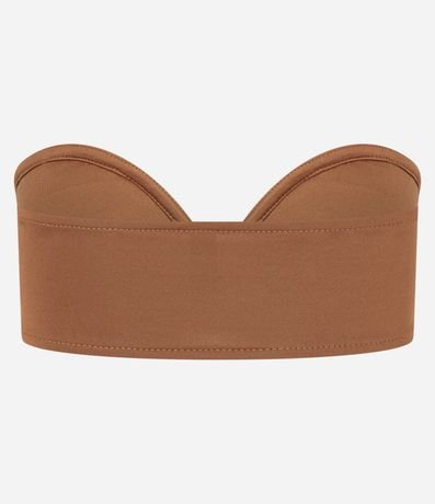 Cropped tomara que caia com busto arredondado e pespontado, tira e abertura frontal, sem estampa e confeccionado em crepe.