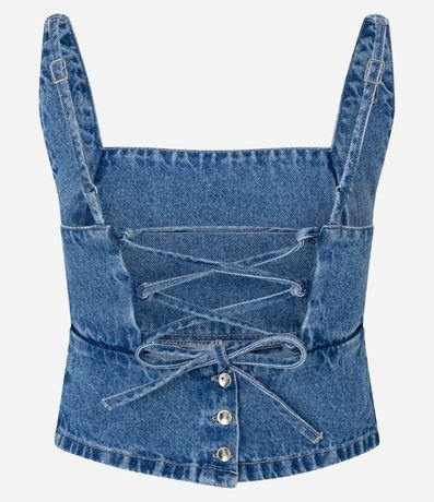 Ref: Blusa cropped com alças largas, confeccionada em sarja, com lace up nas costas e recortes frontais.