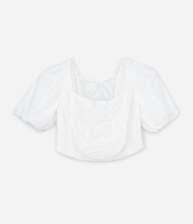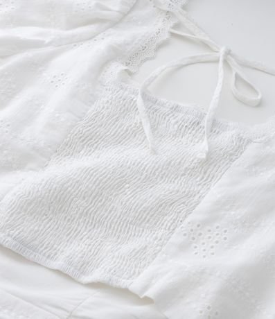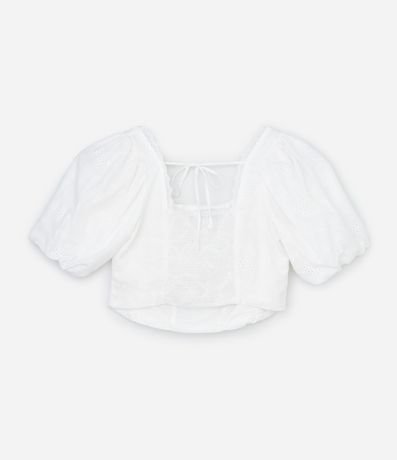 Ref: Blusa cropped em laise com mangas curtas e aviamentos frontais, confeccionada em algodão certificado BCI e boas práticas ambientais. Possui amarração nas costas, lastex para ajuste e forro em viscose, garantindo conforto e estilo para compor looks.