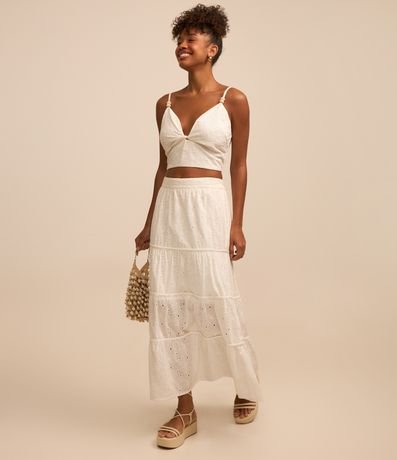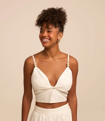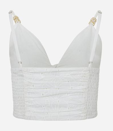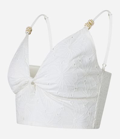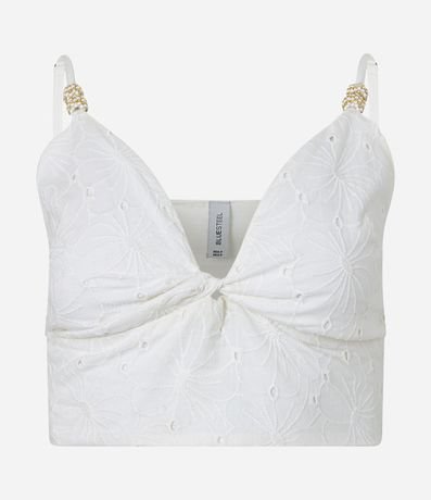 Blusa Cropped em Laise com Detalhe nas Alças
