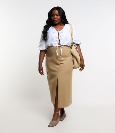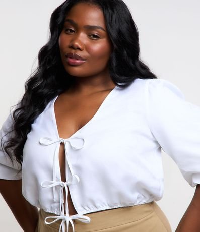 Blusa Cropped em Linho com Amarrações Curve & Plus Size