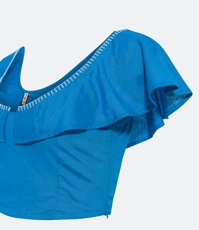 Blusa Cropped em Linho com Babados e Pesponto Contrastante