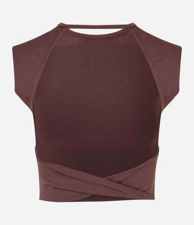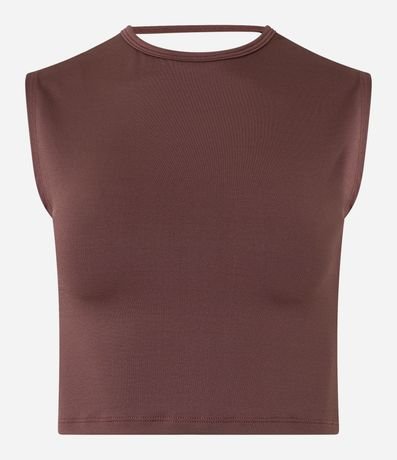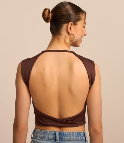 Blusa feminina de modelo cropped, confeccionada em microfibra, com gola redonda e alças largas. Sem estampa, seu diferencial está nas costas abertas e barra torcida.
