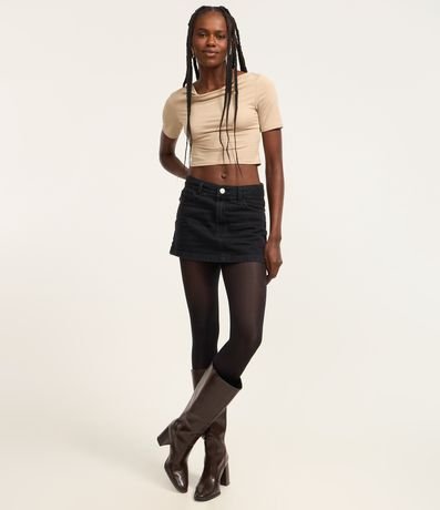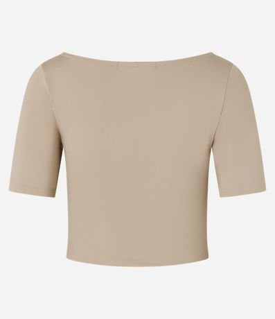 Ref: Blusa cropped com decote degagê, manga curta e confeccionada em microfibra com boas práticas ambientais.