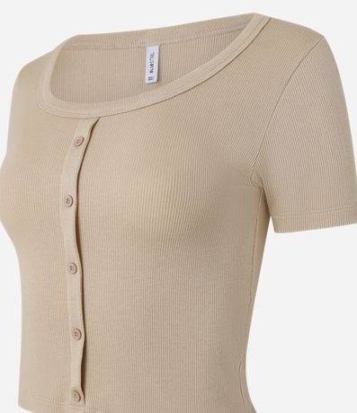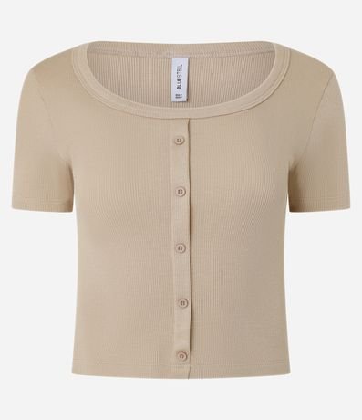 Ref: Blusa cropped de mangas curtas, confeccionado em ribana de viscose certificado com 02% de elastano, com decote redondo e abotoamento frontal. Peça conta com textura toda canelada.