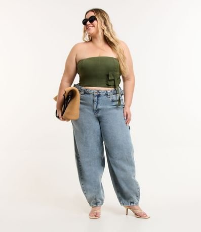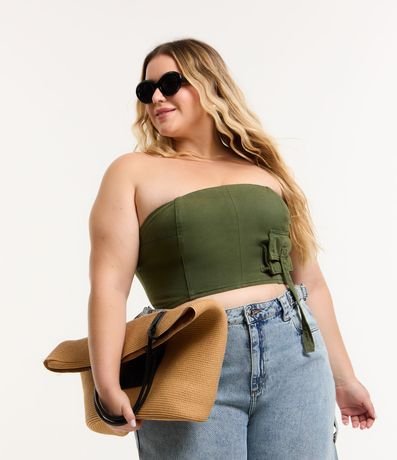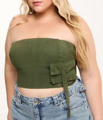 Blusa Cropped em Sarja com Bolso Cargo Curve & Plus Size