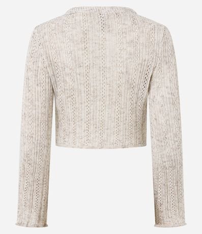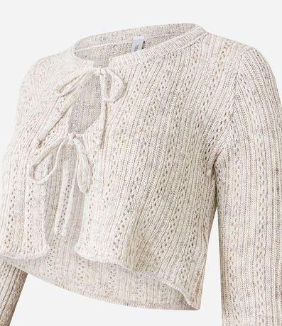 Ref: Blusa cropped om manga longa, confeccionada em tricô produzido em boas práticas ambientais e amarração no busto.