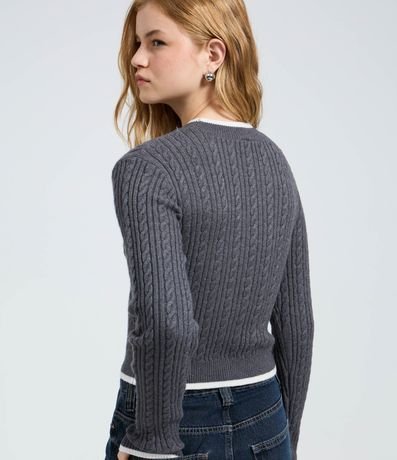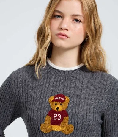 Ref: Blusa cropped em tricô com estampa de urso com camiseta e boné esportivos. Possui mangas longas, gola redonda contrastante e modelagem confortável. Confeccionada em viscose certificada, oferecendo mais responsabilidade ambiental em produções modernas e descontraídas.
