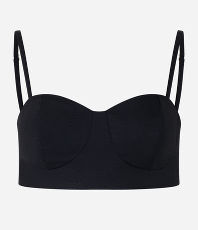 Blusa cropped feminina, confeccionada em tricoline, com alcinhas finas reguláveis e recorte no busto.