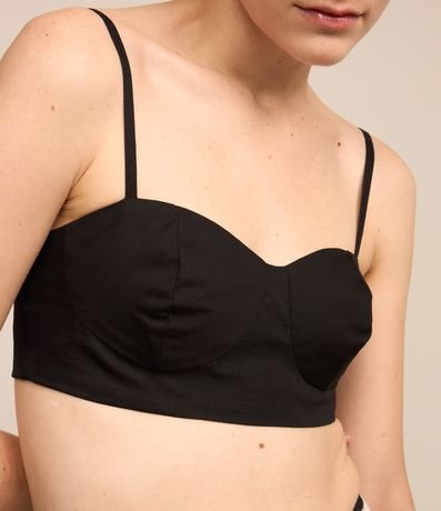 Blusa Cropped em Tricoline com Alcinhas Finas Reguláveis
