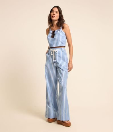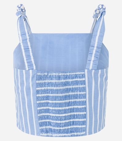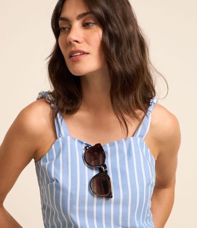 Blusa Cropped em Tricoline Listrado com Nó na Alça
