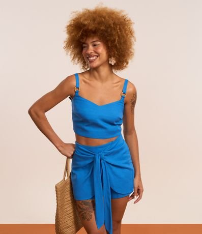 Ref: Blusa feminina confeccionada em viscolinho mais sustentável, no modelo cropped. Possui decote v, alças, com aviamento e lastex nas costas.