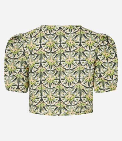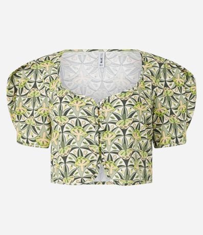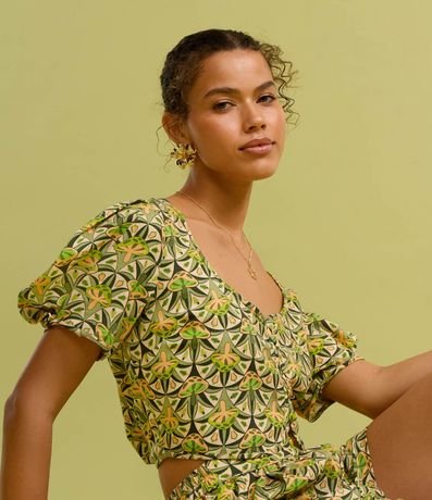 Blusa Cropped em Viscolinho com Estampa Cogumelos
