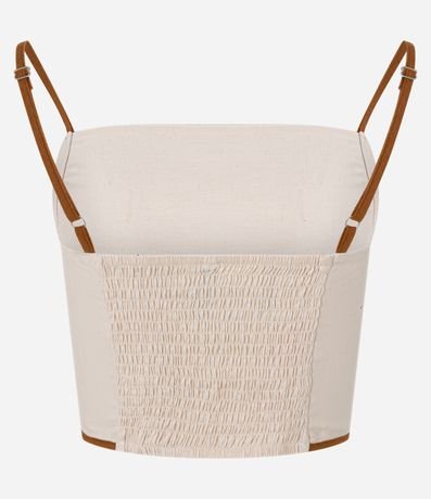 Blusa Cropped em Viscolinho com Lastex e Detalhe Contrastante