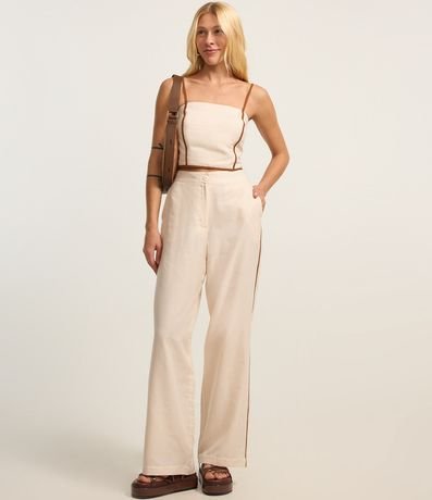 Blusa cropped de alcinhas finas, piping contrastante no busto e barra, lastex nas costas e confeccionada com viscose certificada.